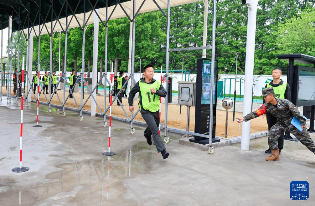 武警部队在上海、江苏、浙江片区组织新时代按纲抓建基层示范活动,武警上海总队执勤第三支队官兵利用智能训考设备进行考核(4月28日摄)。新华社发(李岩 摄)pagebreak