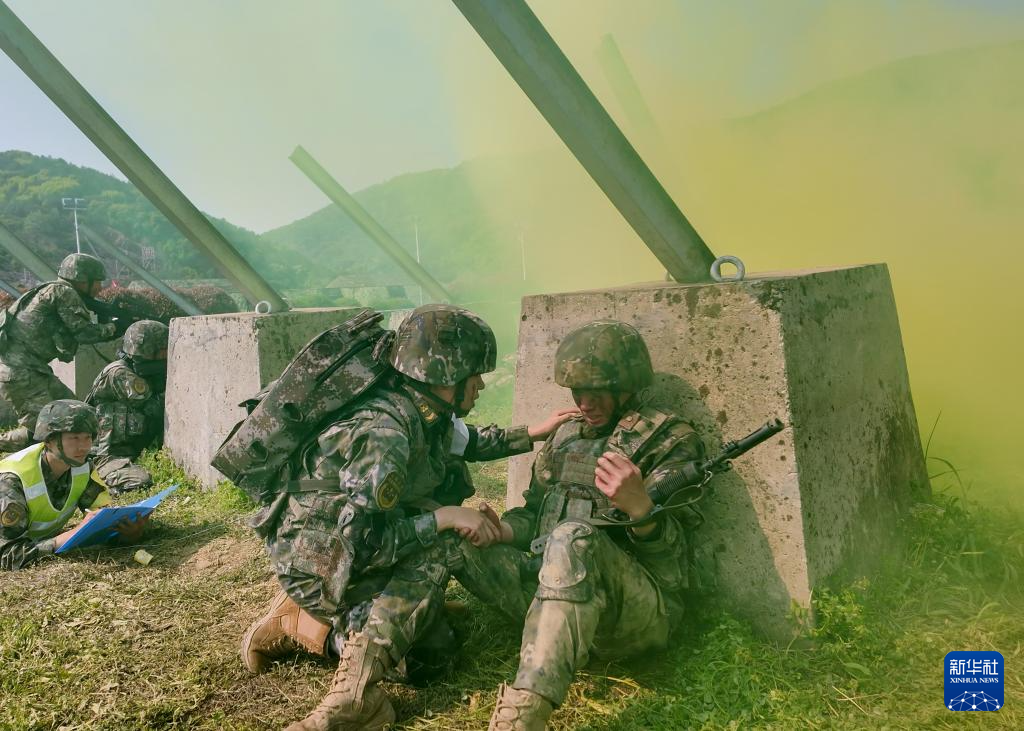 武警部队在上海、江苏、浙江片区组织新时代按纲抓建基层示范活动,武警第二机动总队某部卫生员对官兵进行应激心理疏导(4月29日摄)。新华社发(谢昊男 摄)