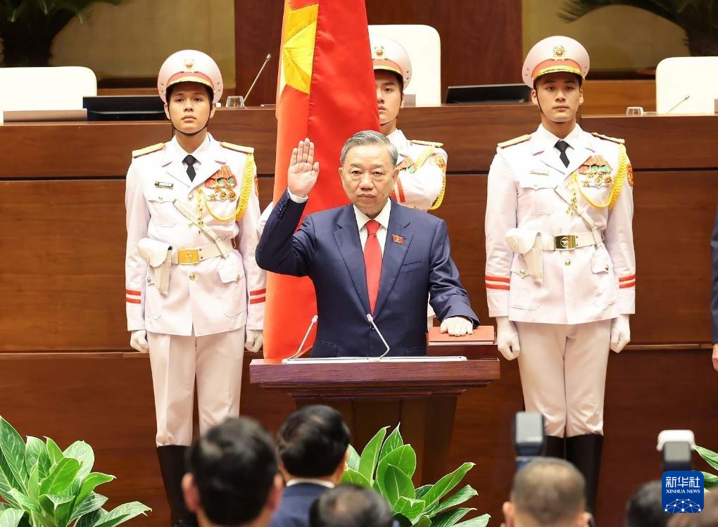 新华社河内5月22日电(记者孙一)据越南国家电视台22日报道,经越南第十五届国会第七次会议当天投票表决,越共中央政治局委员、公安部长苏林当选新任国家主席,苏林随后宣誓就职。