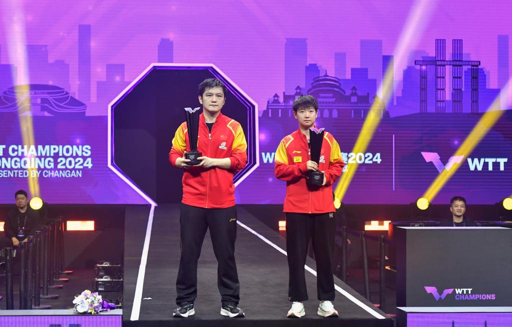 新华社重庆6月3日电(记者谷训)3日,国乒选手孙颖莎、樊振东均以4:3战胜队友,分别夺得2024年世界乒乓球职业大联盟(WTT)重庆冠军赛女单和男单冠军。