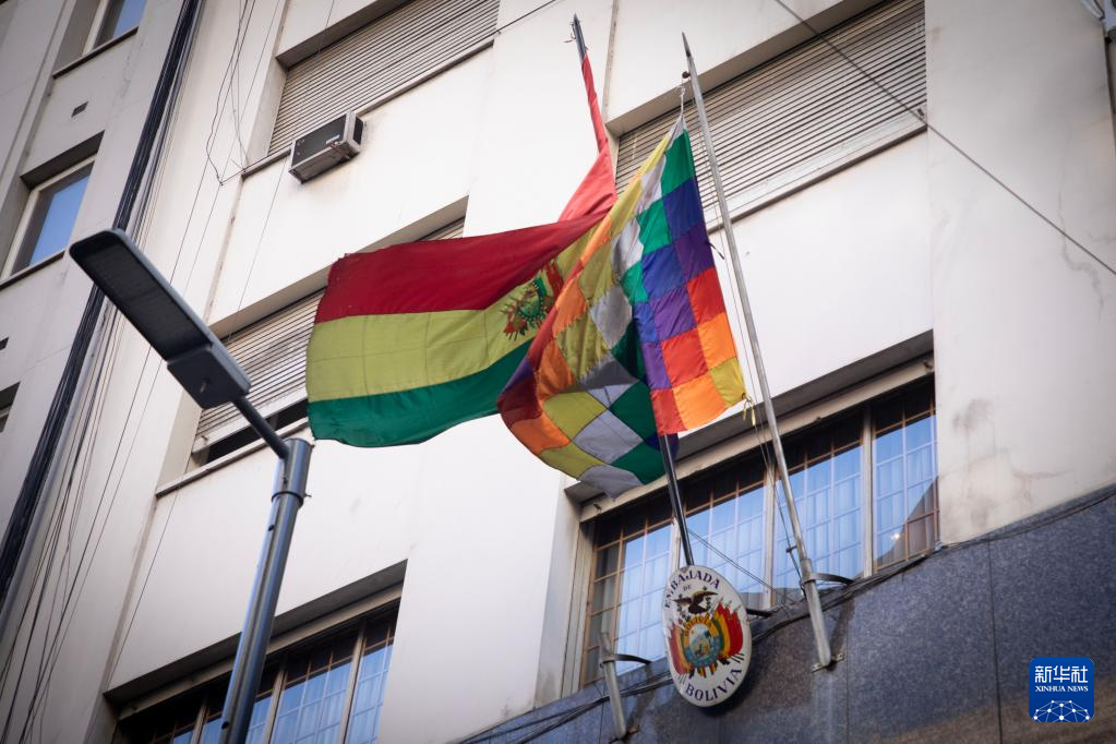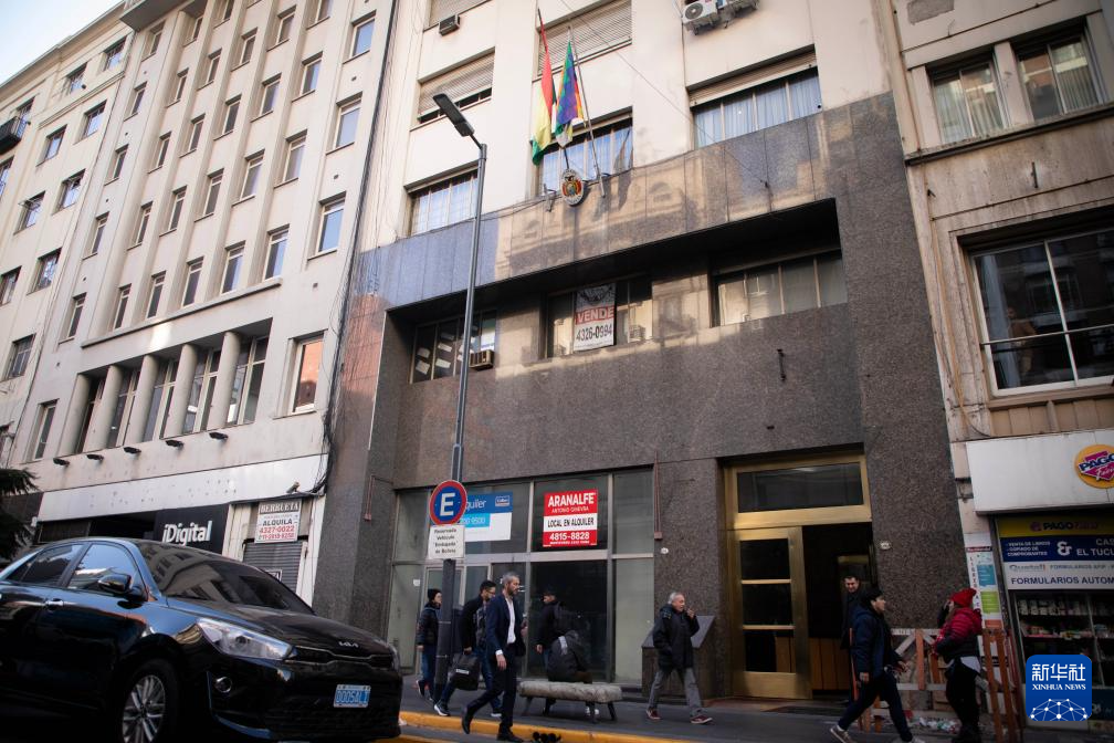 这是7月1日拍摄的位于阿根廷首都布宜诺斯艾利斯的玻利维亚驻阿根廷大使馆。新华社发(马丁·萨巴拉摄)
