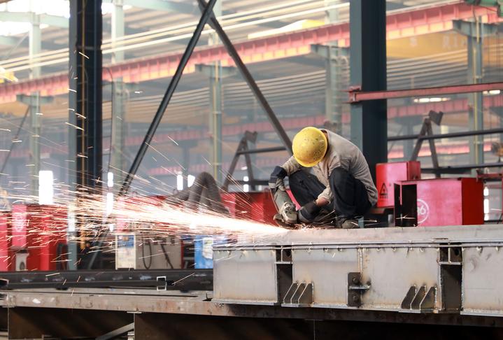 6月20日,在位于河北省邢台市广宗县的河北东风世景轨道有限公司生产车间内,工人在进行抛光作业。王垒 摄