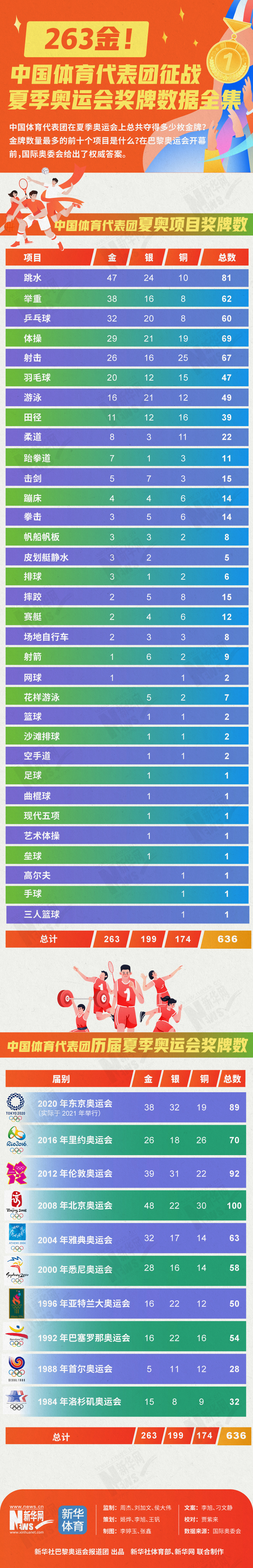 新华社巴黎7月20日电(记者姬烨 赵建通)中国体育代表团在夏季奥运会上总共夺得多少枚金牌?金牌数量最多的前十个项目是什么?在巴黎奥运会开幕前,国际奥委会给出了权威答案。