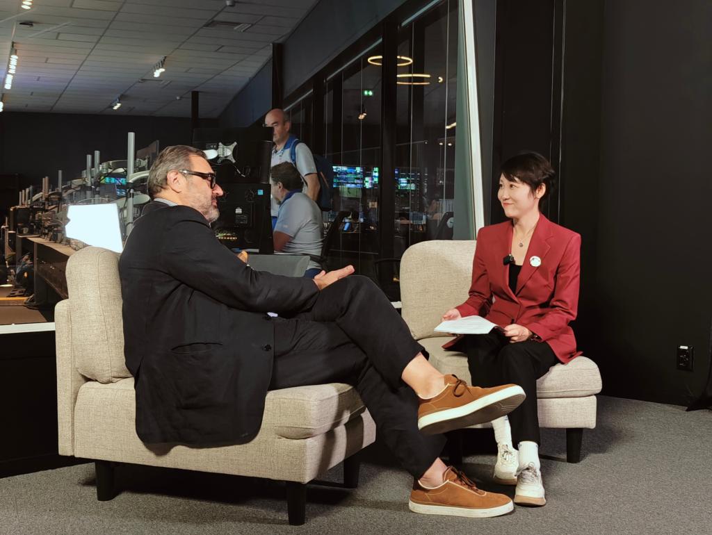 埃克萨科斯是在巴黎奥运会国际广播中心OBS的主控中心接受专访的,这里是奥运会电视转播的“心脏”,所有赛场的信号都收集到这里,再发送给全世界所有的持权转播商。