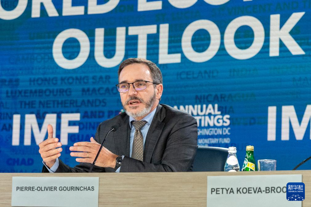 10月22日,在美国华盛顿,国际货币基金组织(IMF)首席经济学家皮埃尔-奥利维耶·古兰沙在《世界经济展望报告》媒体发布会上讲话。新华社记者 胡友松 摄