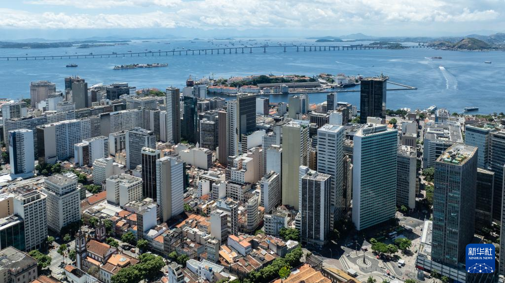 这是3月7日在巴西里约热内卢拍摄的市中心商业区和瓜纳巴拉湾(无人机照片)。 新华社记者 王天聪 摄