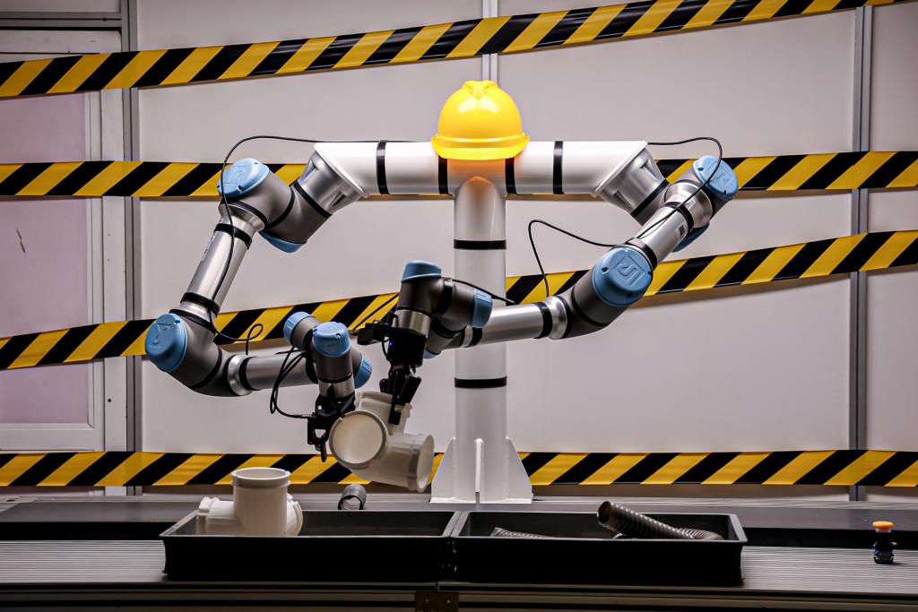 搭载“慧思开物”的机械臂基于语音指令完成工业分拣任务。(受访者供图)