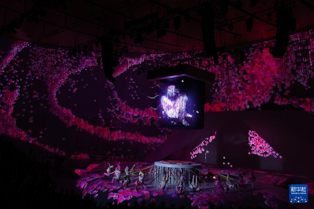 4月12日,在日本大阪,演员在2025年大阪·关西世博会开幕式上表演。新华社记者 贾浩成 摄
