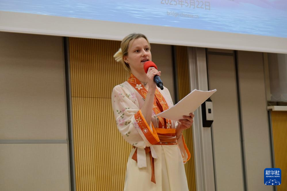 5月22日,一名选手参加在捷克布拉格金融管理大学举行的“汉语桥”世界大学生中文比赛捷克赛区决赛。新华社记者 邓耀敏 摄