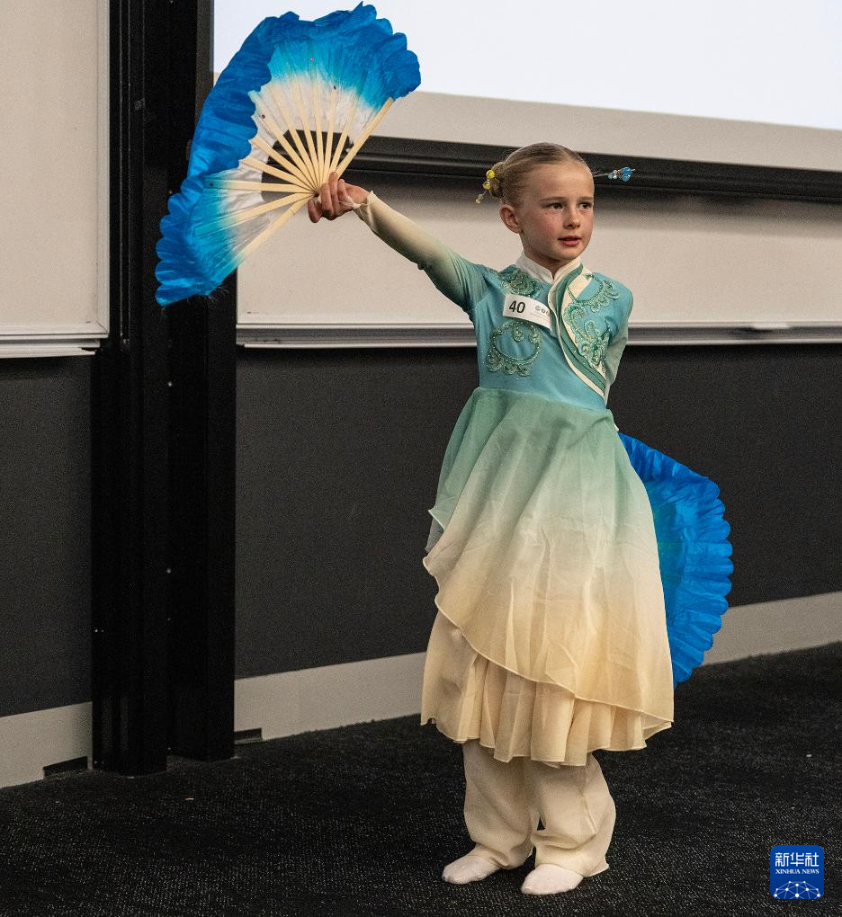 5月24日,在新西兰奥克兰大学举行的“汉语桥”中文比赛上,一名参赛选手表演舞蹈。新华社发(吴家翔摄)