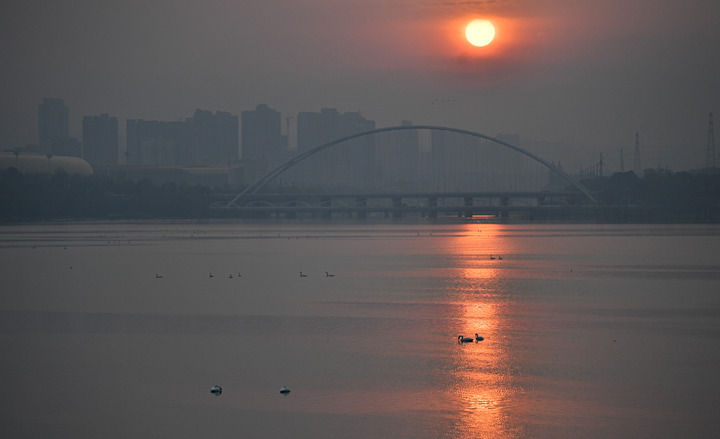 2023年11月9日,大天鹅在三门峡市天鹅湖国家城市湿地公园内栖息。除署名外组图均为新华社记者 吴刚 摄