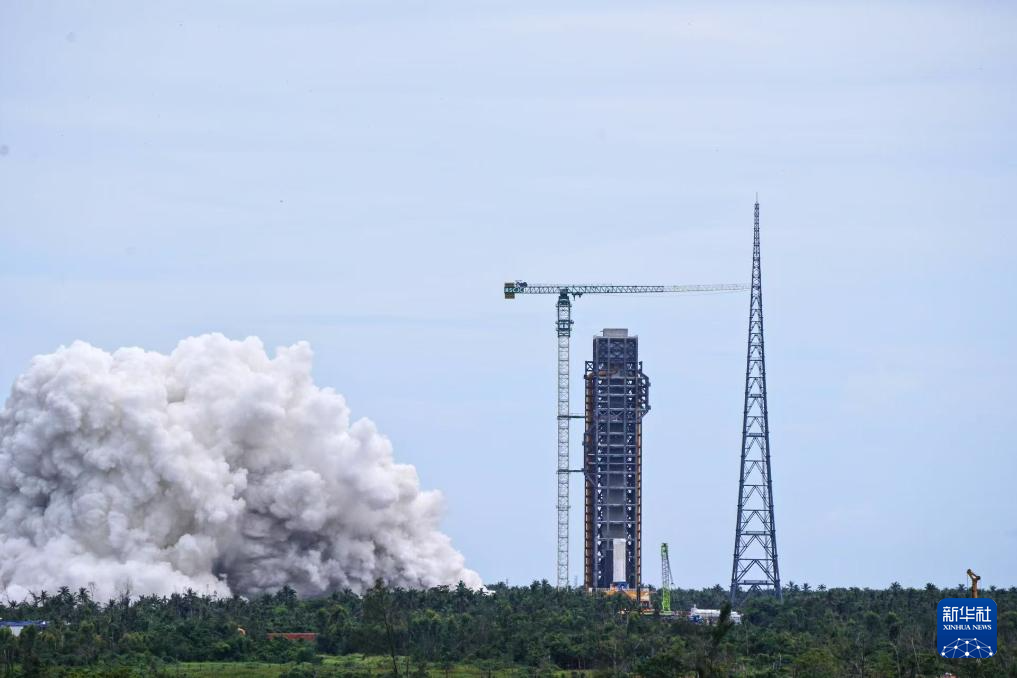 8月15日,我国在文昌航天发射场成功组织实施长征十号系列运载火箭系留点火试验。新华社记者 张斌 摄