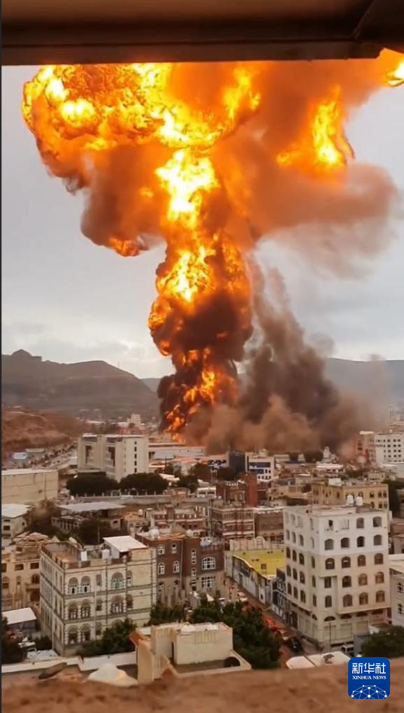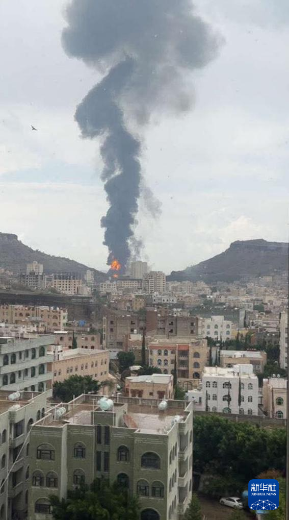 这张8月24日手机拍摄的视频截图显示,也门首都萨那一处目标遭到以色列空袭后燃起大火冒起浓烟。新华社发
