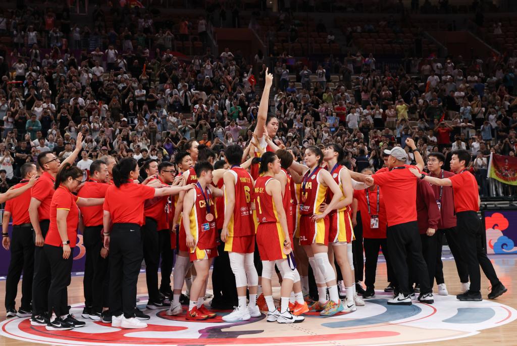 7月20日,中国队成员在2025国际篮联女篮亚洲杯季军赛比赛后。新华社记者 毛思倩 摄