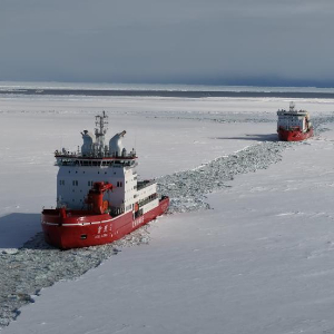 船时12月4日晚间,“雪龙兄弟”成功汇合。船时12月5日下午3时许,“雪龙2”号已将“雪龙”号引航至预定作业点,两船将在该作业点共同完成后续卸货任务。