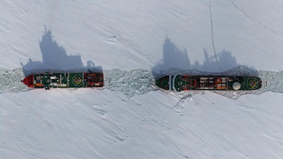 第42次南极考察丨“双龙探极”:“雪龙2”号为“雪龙”号破冰引航