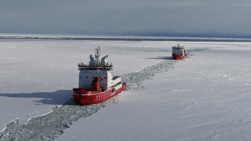 第42次南极考察丨“双龙探极”:“雪龙2”号为“雪龙”号破冰引航-新华网