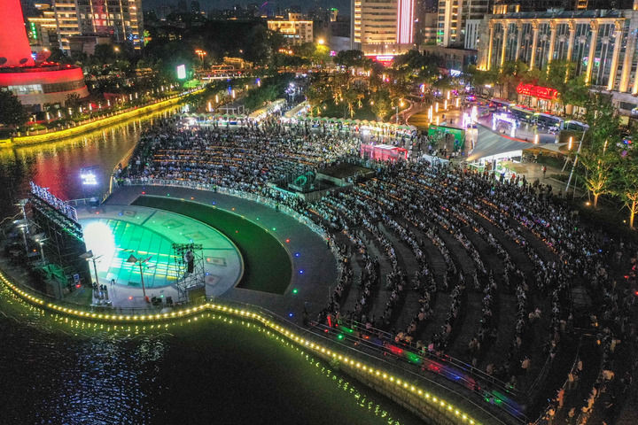 6月29日,市民、球迷在南通环西文化广场观看“苏超”第五轮南通队主场对阵宿迁队的比赛直播。新华社记者 李博 摄