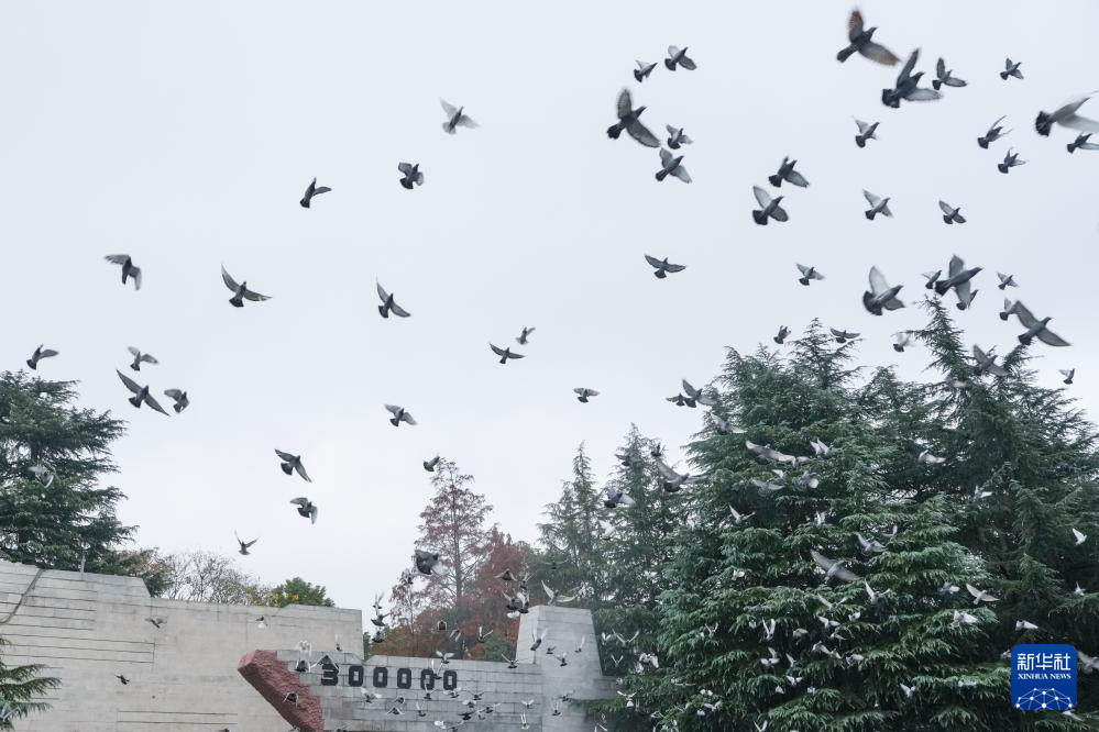 12月13日,南京大屠杀死难者国家公祭仪式现场放飞和平鸽。