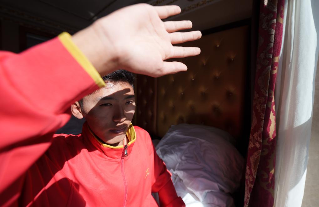 天边泛起鱼肚白,索南加参眯着眼望了望东边,接着戴上了墨镜。在拉萨冬日清晨的凛冽寒风中,这个19岁的藏族运动员开始了晨练。他的额角凝着薄汗,呼出的热气伴着粗重的喘息声,一团团融进寒风里。天光越来越亮,只有在墨镜的保护下,他的眼睛才能适应白昼的光线。