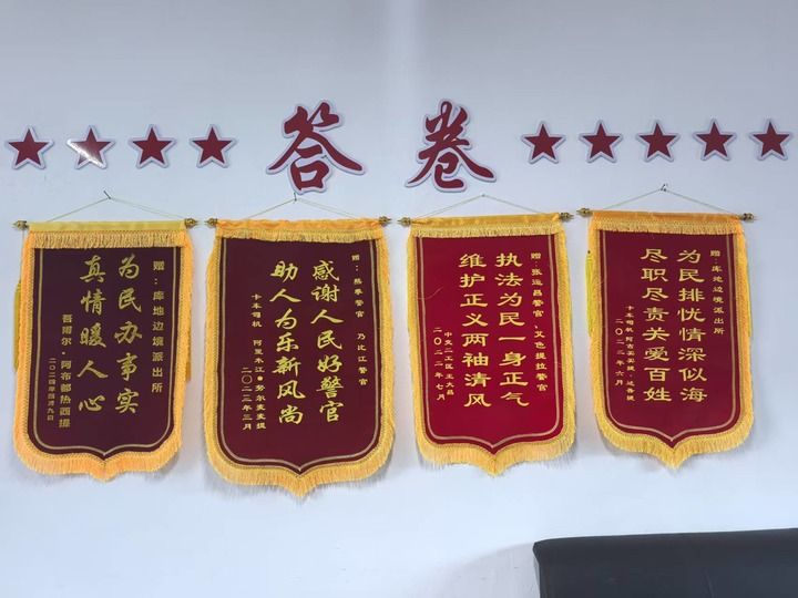 这是2025年12月20日在库地边境派出所内拍摄的锦旗。新华社记者 蔡国栋 摄