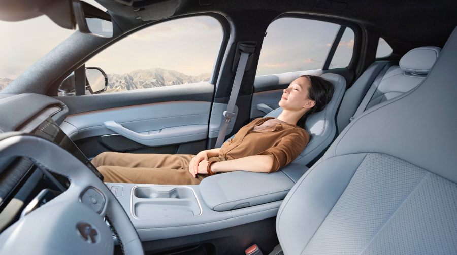 源于蔚来自研高端座椅平台,全新EC6的一体式运动座椅设计能够充分贴合人体脊柱生理曲线,兼顾激烈驾驶的包裹性与家用出行的舒适性,配合S-Shape原生座舱布局,带来更加舒展、宽敞的空间感受。主驾座椅支持16向电动调节,副驾座椅支持18向电动调节,后排座椅靠背角度支持前后8°电动调节。第二代“女王副驾”可实现最大172°的靠背倾角,并提供一键舒享和一键舒躺模式,带来真正双120°零重力体验。前排座椅具备加热、通风与8点式指压按摩功能,通风采用体感更好的吸风模式,8点式指压按摩力度到位,模式丰富。新车方向盘也具备加热功能。全方位的舒适功能,让驾乘者时刻都能感受到愉悦与惬意。