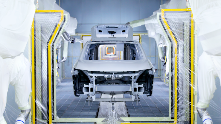 广汽丰田在涂装车间导入丰田独创的涂装静电吸附工艺、涂着效率达90%,居行业尖端水平。