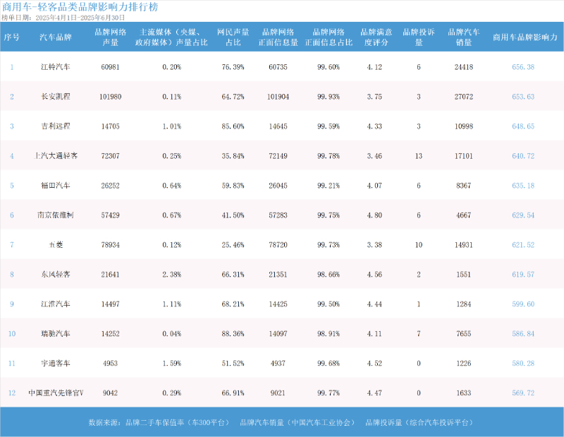 2025年第二季度商用车-轻客品类品牌影响力排行榜