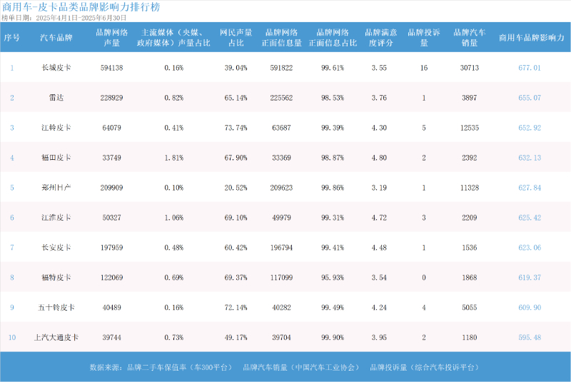 2025年第二季度商用车-皮卡品类品牌影响力排行榜