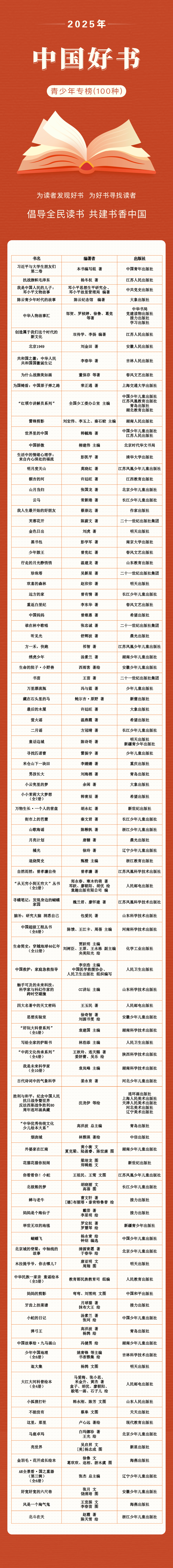 100种图书入选2025年“中国好书”青少年专榜-新华网