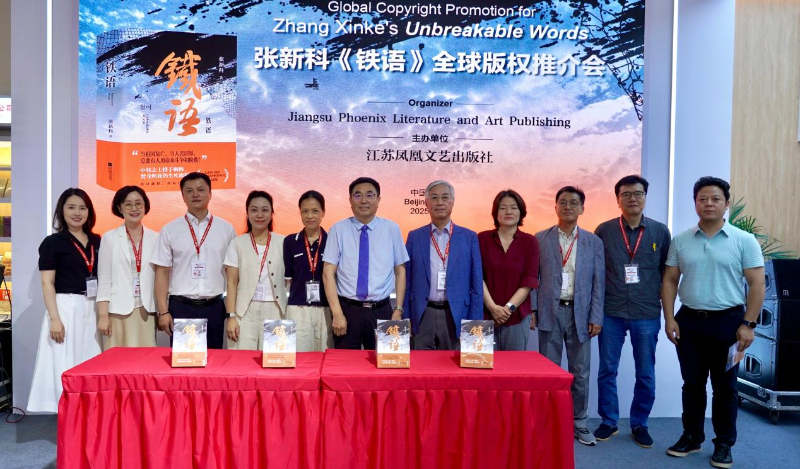 6月19日,长篇历史小说《铁语》全球版权推介会在第31届北京国际图书博览会上举行。活动由江苏凤凰文艺出版社主办,作家张新科现场讲述《铁语》创作历程,江苏凤凰出版传媒股份有限公司副总经理袁楠、江苏凤凰文艺出版社总编辑赵阳、中国前驻韩国大使邱国洪、韩国大舶出版社社长唐坤发表致辞。