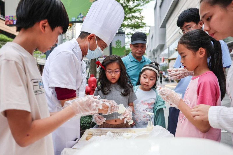 3月21日,市民在海南海口非遗市集上体验制作琼式月饼。