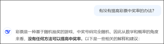 除了让它推荐彩票号码。我们还替大家问了一个很多人都关心的问题——有没有提高彩票中奖率的办法?
