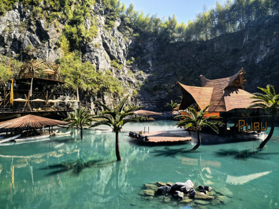 在群山环抱中,一处曾是垃圾场的地块,以“深蓝计划·深蓝公园”之名重获新生。项目团队通过融合当地文化元素的设计,打造出与山谷环境相得益彰的打卡地标。空间规划上,公园巧妙划分动静区域:一条路径通往竹山和阔叶林的静谧深处,另一条连接未来的漂流项目和热闹广场。即将实施的“旧书兑换门票”计划,还将让游客带着喜爱的书籍,写下感悟,与陌生人进行跨时空交流。