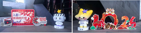 馆内精心打造《入画·影门贺岁》《入影·锦绣胶片窗》《拾光·胶片话新年》《团圆·年味合影框》等多处特色打卡点,融合电影胶片元素与传统春节技艺,处处洋溢新春喜庆,成为观众定格新春光影记忆的好去处。