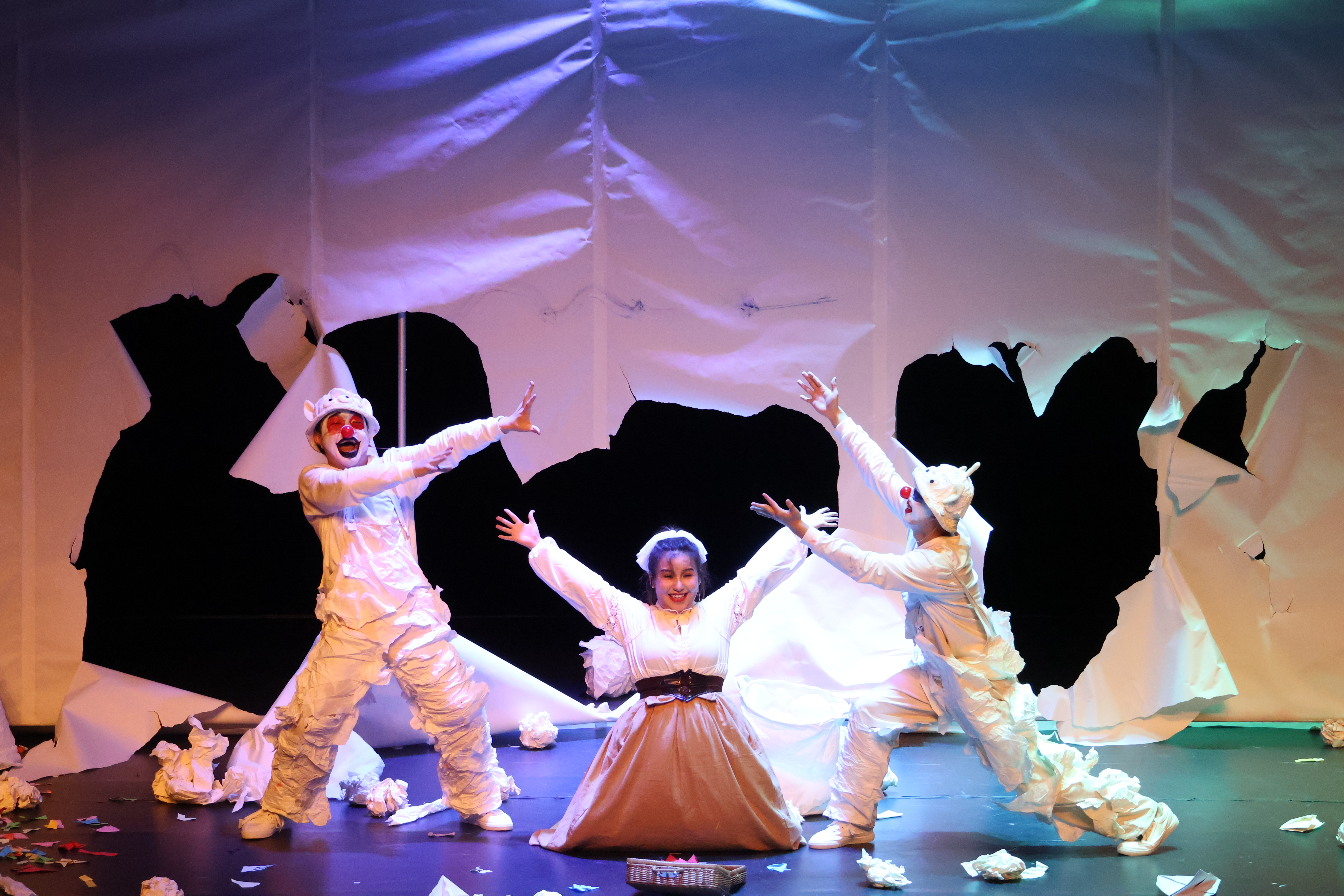 《魔法纸世界》讲述了洁癖小姐与纸精灵相遇、相互治愈的暖心故事。作为一部充满想象力的互动剧,突破了传统小朋友们只能看剧的观演形式,整个舞台由纸做成。把舞台道具全部交给小朋友们触摸,演员带领小朋友将纸背景撕开,打破舞台与观众的边界。