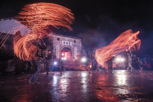龙南物华天宝,滋养舌尖福地。客家宴席,热情如火。千人宴、客家菜汇聚酿豆腐、凤眼珍珠、捶鱼等地道风味,一筷一勺皆是乡情。山珍佳酿,回味无穷。客家米酒醇厚甘甜,云雾茶清香沁脾,脐橙、鹰嘴桃、富硒蔬菜远销港澳,每一口都是自然的馈赠。非遗技艺,匠心传承。冬头帕织带五彩斑斓,锡壶铸造巧夺天工,古法造纸、香火龙舞赓续千年客家记忆。