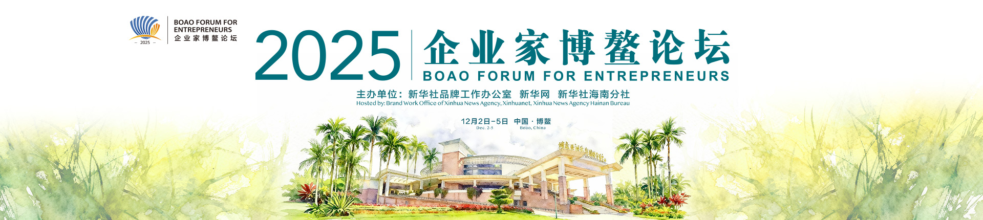 - 12月2日至5日,以“链接全球,引领未来:‘十五五’新机遇”为主题的2025企业家博鳌论坛在海南省琼海市博鳌镇举行。本届论坛由新华社品牌工作办公室、新华网和新华社海南分社主办。