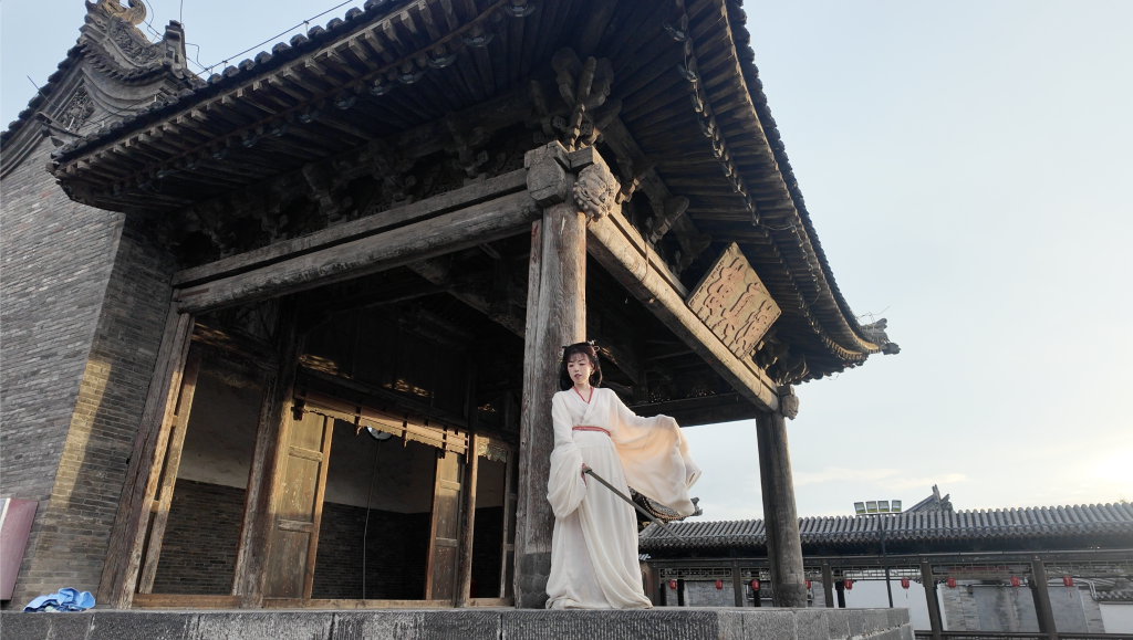 记者在鼓楼东街邂逅了一场酣雨,着古装扮成“晋商大小姐”的姑娘们撑着油纸伞穿雨而过,雨后古街被洗刷一净,古戏台和元代建筑关帝庙更显古韵。踱步街上,极具历史感的的房梁、门楼给人以时空穿越之感,空气中弥漫着陈醋香,走进一家店铺要上一碗羊杂,就上几个烧麦,再喝一杯“杏子拿铁”,好不快意。
