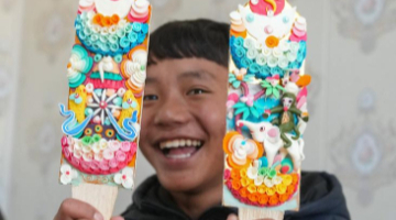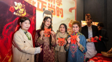 2月25日,两名土耳其观众在第十届伊斯坦布尔出版联谊会中国文化展区拍照留影。