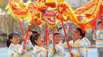 3月1日,一名小朋友在位于武汉市江夏区黄龙山路地铁口的主题墙前拍照。