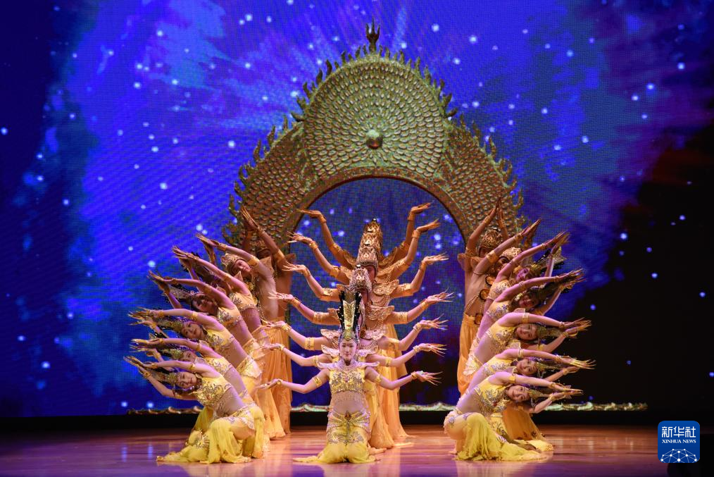 3月15日,中国残疾人艺术团演员在台北表演《千手观音》。新华社记者 刘斐 摄