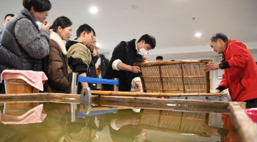3月15日,在印度尼西亚雅加达,参加《哪吒之魔童闹海》首映礼的观众领取电影票。