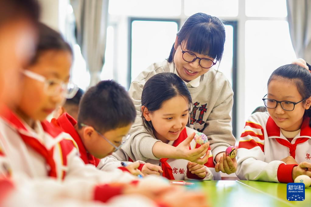 3月20日,天津市滨海新区塘沽实验小学的学生们绘彩蛋,了解春分节气习俗。