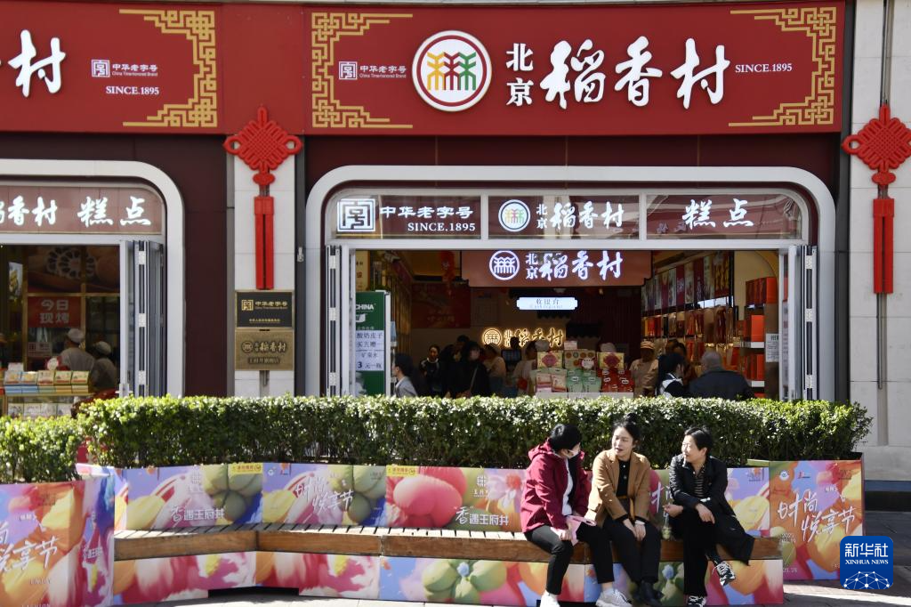 这是3月20日在北京王府井商业街区拍摄的一家老字号食品店。