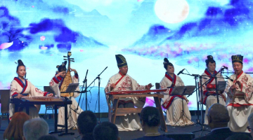 4月17日,兴庆区实验第二小学学生在活动上弹奏琵琶。