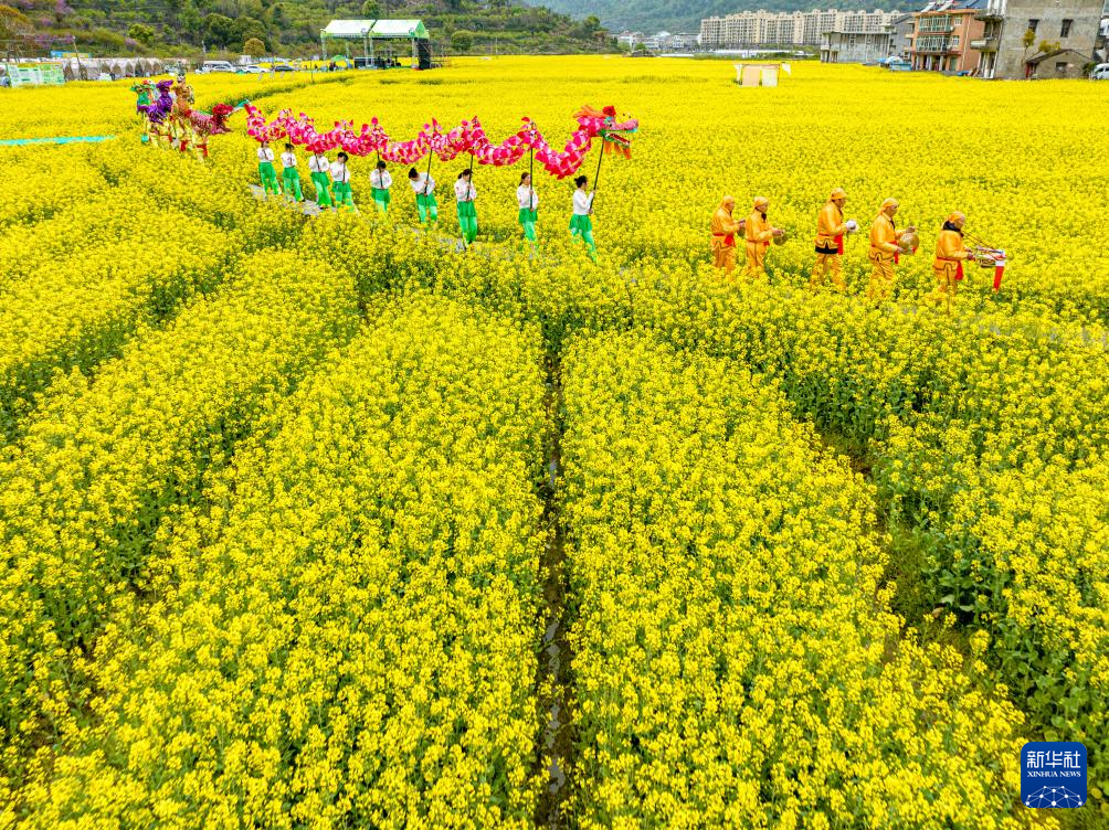 3月31日,农历三月初三,民间艺人在浙江省温岭市石桥头镇下宅金村表演(无人机照片)。