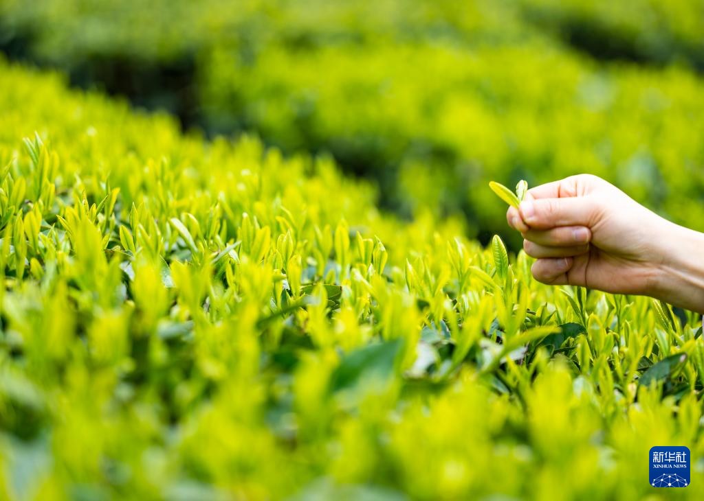 4月4日,湖北省宜昌市秭归县九畹溪镇峡口村茶农在采春茶。