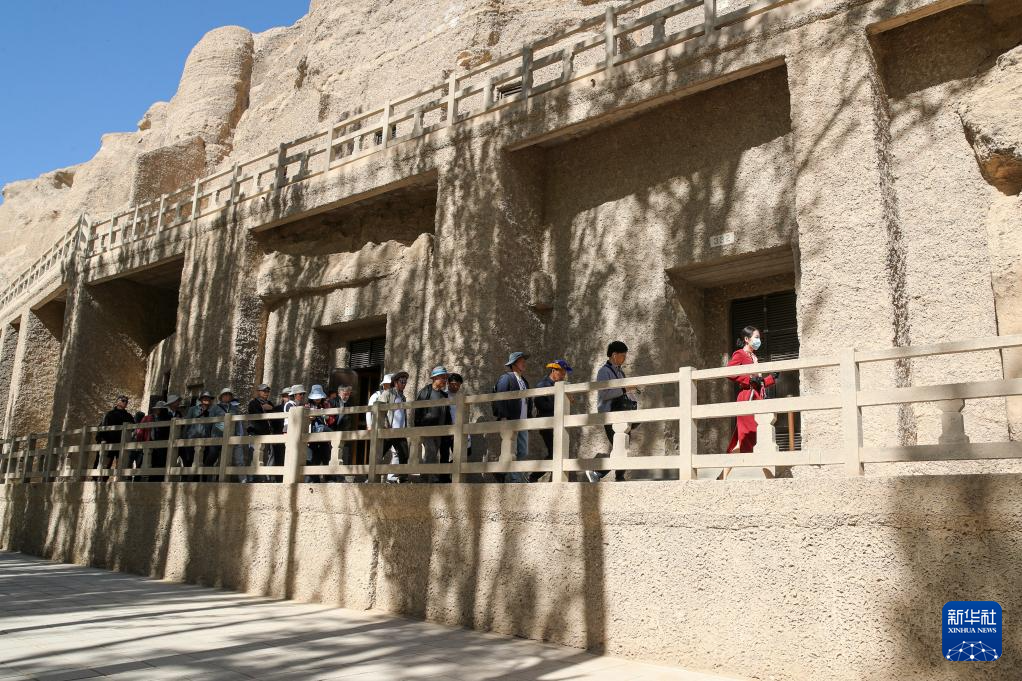 5月10日,游客在敦煌石窟文物保护研究陈列中心参观。