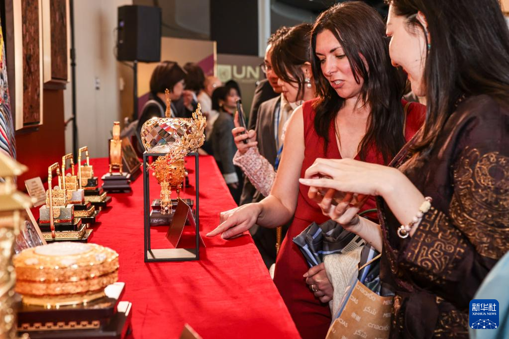 5月19日,在位于纽约的联合国总部,人们参观故宫文创展。